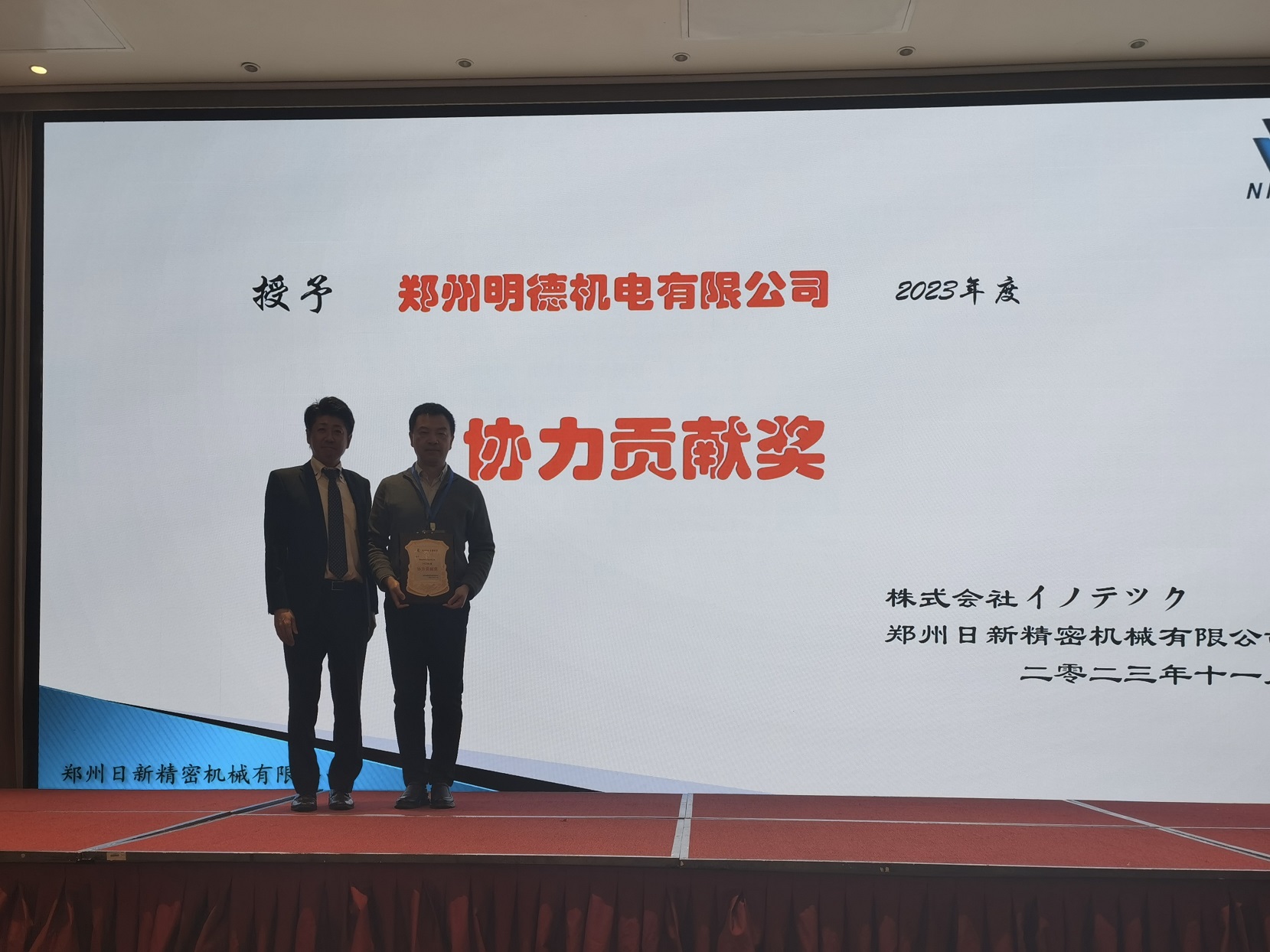2023年11月17日下午3點(diǎn),“2023年合作企業(yè)年會(huì)”在中州假日酒店正式開(kāi)始。本次年會(huì)共邀請(qǐng)合作企業(yè)30家,共計(jì)55人參加。其中設(shè)立了4個(gè)合作企業(yè)獎(jiǎng)項(xiàng),分別是:優(yōu)秀供應(yīng)商獎(jiǎng),協(xié)力貢獻(xiàn)獎(jiǎng),納期安定獎(jiǎng)和品質(zhì)向上獎(jiǎng)。最后由山東裕隆金和精密機(jī)械有限公司和河南廣瑞汽車(chē)部件股份有限公司獲得了年度“優(yōu)秀供應(yīng)商”獎(jiǎng)項(xiàng)。